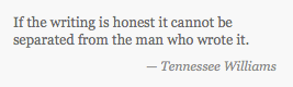 I haven’t used WordPress in awhile, apparently. When I went to publish this first post for rarlington, a Tennessee Williams quote popped up.
